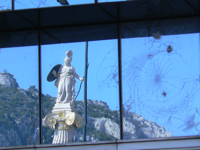 Reflection of Goddess Athena Statue, protector of Athens, Central Athens.